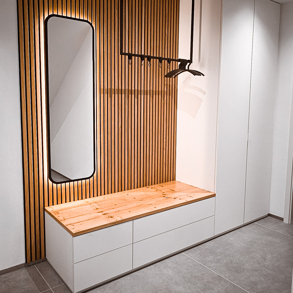Von der Idee bis zum fertigen Raum: Wir planen und realisieren komplette Raumlösungen und arbeiten dabei eng mit erfahrenen Partnern aus Design, Architektur und Handwerk zusammen. So entsteht ein stimmiges Gesamtbild bis ins kleinste Detail.