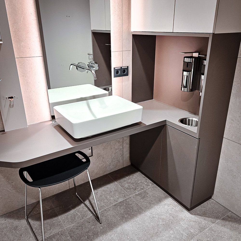 Dank unserer detailgenauen CAD-Planung erhalten Sie schon früh einen realistischen Eindruck von Raum und Möbel. In der Visualisierung wird schnell sichtbar, was harmonisch wirkt und wo Proportionen, Farben oder Details noch optimiert werden können. Farben, Oberflächen und vorhandene Elemente wie Böden, Fliesen oder Bestandsmöbel beziehen wir konsequent in das Gestaltungskonzept ein. Oft stimmen wir diese direkt vor Ort mit originalen Farbmuster ab – denn erst im richtigen Licht zeigt sich, wie ein Möbel im Raum wirklich wirkt.