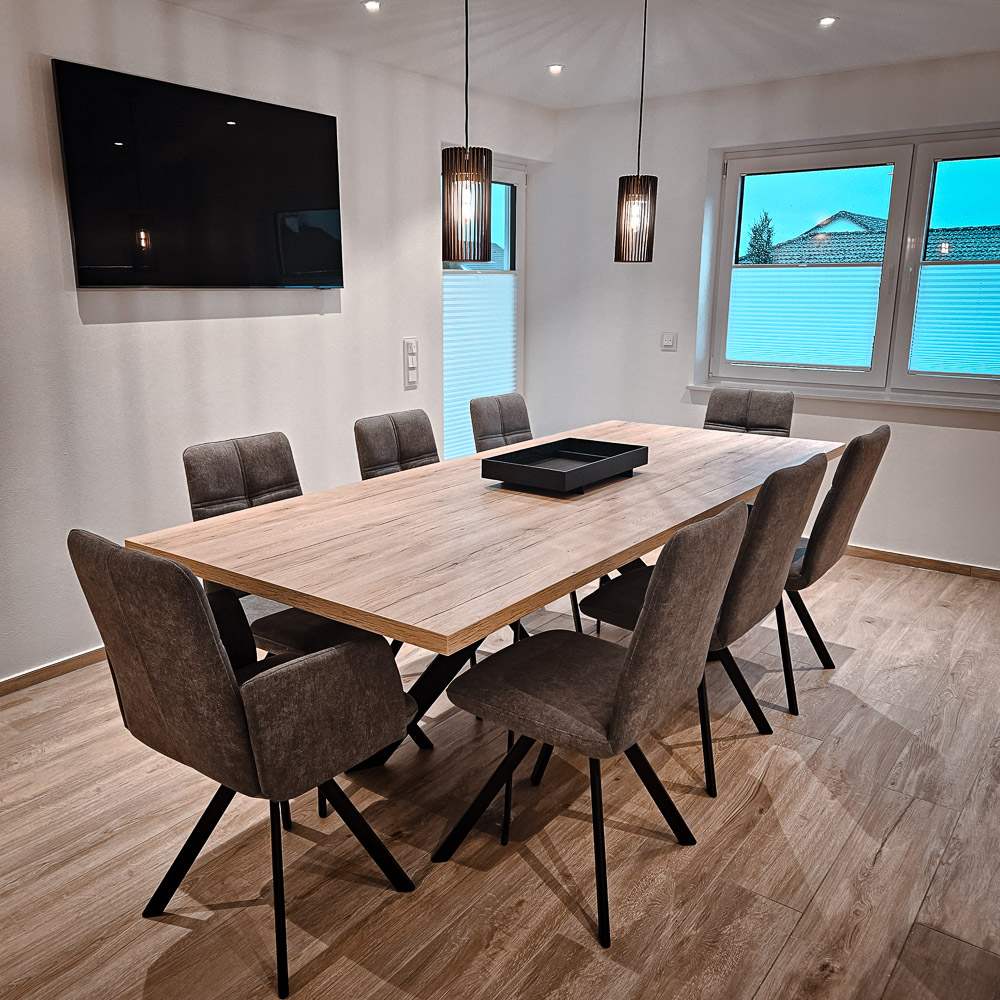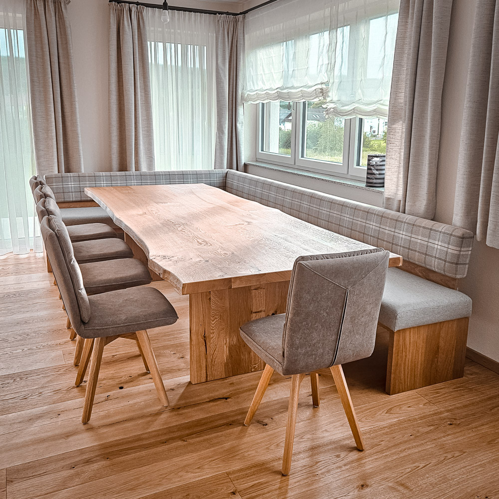 Entdecken Sie unsere realisierten Esszimmer-Projekte: individuelle Tische, hochwertige Materialien und stilvolle Details, die Ihren Essbereich zu einem besonderen Ort machen.